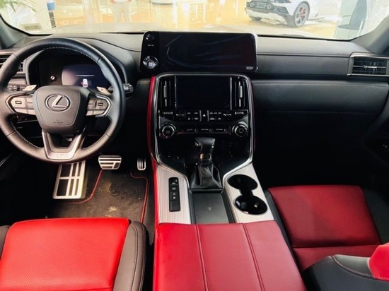 配置:7座 ,3.5tt双涡轮发动机,10速变速箱,换挡拨片,P265/50R22轮胎,lexue运动包围,后排手动遮阳帘,全LED照明防擦板,半苯胺真皮座椅,25扬声器马克莱文森高级扬声器,铝制内饰条,2排座椅通风,扭矩感应限滑差速器,前平衡杆,驾驶模式选择,智能卡,电尾门带脚感,无线充电,环影,盲点检测,lexus 2.5安全系统,车道辅助,前碰撞预警,交叉口左转辅助,自动远光灯,预碰撞行人和自行车监测,车道偏离预警带方向辅助,全速域动态雷达巡航系统,紧急避让,蓝牙,无线carplay,无线安卓,Lexus助手,12.3英寸触摸屏,6USB充电口,前座椅通风加热,前排座椅4向腰部调节,10向驾驶座调节,3排座椅,座椅记忆,真皮包裹方向盘带加热,氛围灯,防眩目后视镜,拖车轨迹控制,坡道起步,下坡辅助,多地型选择,蠕行模式,4级拖车口,大灯清洗,高级三光led头灯,雨感雨刷器,雨刷除冰,全景天窗,后扰流板,挡泥板配置:22款加版LX600 黑/红黑双拼 七座运动版 展位现车 22X万