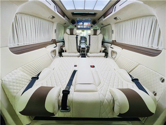 奔驰威霆改装商务车区别于奔驰威霆商务车传统式样冗余的中控台按键排列,取而代之的是大尺寸液晶触控屏,更具现代科技感的掌间操控,其下方则保留了更加实用的常备功能键位,行车安全性应该商务车的一大亮点,正副驾驶配备安全气囊,驾驶舱两侧配备安全气帘,此外电动防夹车窗,支持一键升降。