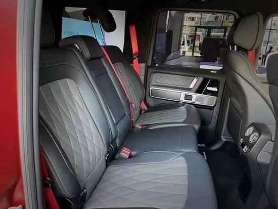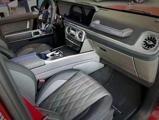 22款奔驰G500“图腾”三把锁开关仍然是全新一代G级的核心,位置没有改变。此外,全新的三辐式多方盘依然配备有奔驰双拇指控制(Dual Thumb Control)奔驰G500经过全新改款内饰豪华气派,卓越的品质和精致的工艺在车内体现得淋漓尽致,对细节的精益求精是内饰设计中的重要原则。车内采用深色调与桃木装饰,黑色真皮运动座椅非常舒适,方向盘以高档真皮包裹装饰,触感极其细腻。