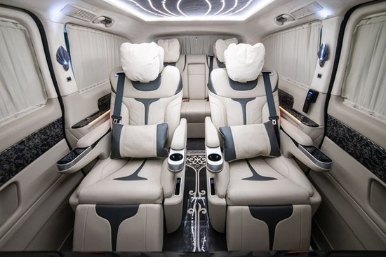 进口奔驰V250改装配置大体分:进口奔驰V250平顶四座版,进口奔驰V250平顶七座版,进口奔驰V250高顶四座版,进口奔驰V250高顶七座版。1.V级格栅包围(选配:可升级迈巴赫格栅包围及银河格栅包围)彭经理:17720015375《同微信》 2。鹰眼式LED大灯 3.V级轮毂(选配:迈巴赫各款轮毂可选) 4。车身镀铬亮条 5。五门(三门电动) 6。折叠后视镜 7。九速空气悬挂底盘升降 8。古巴影木装饰 9。多功能方向盘 10。智能语音 11.V级中控台包覆 12。门板包覆 13。车载双向冰箱 14。外接电源接口 15。定制版铝合金脚踏。