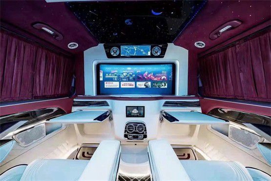 奔驰威霆商务车BOSE立体环绕车载音响系统,实用多功能吧台集合车载咖啡、隐藏电动圆桌以及隐藏式秘书座椅,可以形成商务对坐洽谈模式。