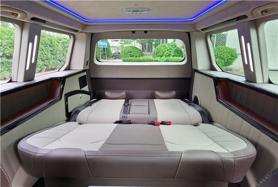 第三排座椅腿部空间的确给力,第三排空间,座椅方位就偏高,所以离车顶也是正常现象,不过这种布局有一个优点就是视界很棒,能够坐在第三排看到前挡风的视界,有种剧院式的效果。巨大的车内空间,舒适的座椅加上惊人的腿部空间,即便长途旅行也不会让您感觉到一点点不适,勇猛者的座位数标配为7座,第二排装备了两个功用型的独立坐椅,第三排装备的是可翻倒式的三人坐椅,一键秒变沙发床。