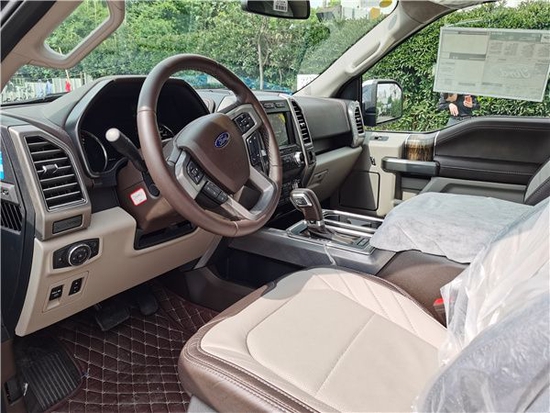 进口平行车福特F150勇猛者SUV 3.5T 为了更好地迎合车系的粗犷与硬实,总体的车内饰大概是维持初始设计风格不会改变,坐进车你可能感受到它心里美国式的野性与张场,坐椅选用规范与众不同的皮革制品装饰设计,这种坐椅另外具有记忆力作用。车内饰选用与众不同的仪表台和门饰表面漆和牛皮包囊的汽车方向盘,能够独立选配奢华套服,奢华套服中包含了很多的舒适度的技术性,例如坐椅的自然通风加温等。