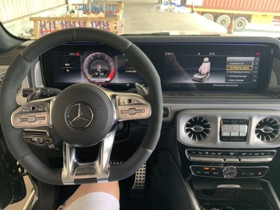 标配:3把差速锁、电动天窗、21寸AMG轮毂、雷达测距、多光束LED大灯、LED日行灯、环影、并道、前后电眼、柏林之声音响、64色氛围灯、12.3 英寸全液晶中控屏、前排电动座椅带3组记忆、前排座椅通风加热按摩、后座椅加热、三区空调、碳纤维内饰、翻毛皮方向盘 黑色翻毛皮内顶、脚踏板、电动折叠后视镜带奔驰地射灯、 隐私玻璃