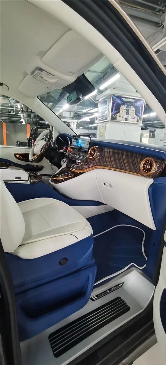 奔驰VS680改装整车加装了登车踏板、全车镀铬套件、LED迎宾踏板、LED灯饰及油漆同色,使整车更加尊贵霸气。竹苞松茂的时尚窗帘,8偏向电动调治按摩航空座椅,座椅阁下的文娱节制中隔屏,车内电器可任意一键操纵,可开启式全景天窗,在浩大的夜景中,共同“满天星”格调,好像在豪华的宫殿。vs680