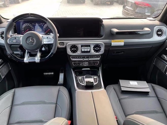 22款奔驰G63豪华精致的真皮包覆提供了足够的舒适性和支撑性,通风和加热功能让乘客免受高温和寒冷的煎熬。中控台多处均采用碳纤维材料覆盖,带彩色TFT显示屏的AMG仪表盘、AMG主菜单和单独的挡位显示器以及采用白色照明的AMG门槛。名贵的选材及精湛的内装令人拍案叫绝。
