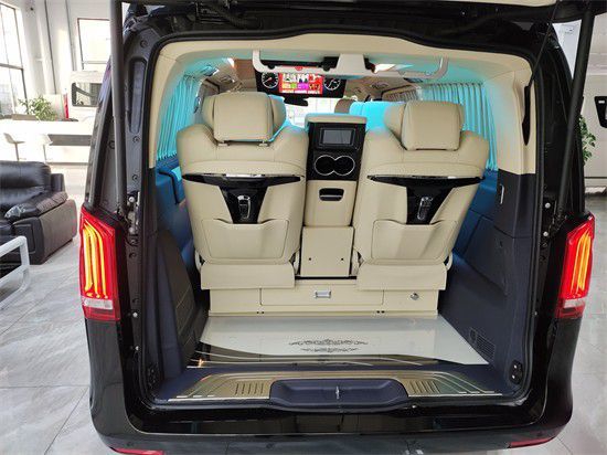 2022款奔驰V260L高顶7座改装豪华商务车,中排航空座椅带旋转功能,和后排面对面,搭配胡桃木可拆式小桌板,无论是移动办公还是家庭出游,绝对满足您各种需求,娱乐休闲二不误。2022款奔驰V260L高顶7座改装豪华商务车,这台车还有更大的亮点,第三排沙发床可独里操作单边座椅,放平,收缩,带腿托支撑,不影响邻座,可等同第二排航空总裁座椅舒适度。2022款奔驰V260L高顶7座改装豪华商务车,尾部后舱超大行李箱空间可放四个高尔夫球包,成为您出差旅行的最佳拍档。如果您也喜欢这款车,请与我们联系,恭候您的大驾光临!