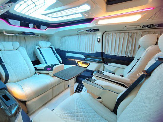 2022款奔驰V260L高顶7座改装豪华商务车,正副驾驶座后排带航空小桌板,使用更加便捷。整车选用高级麂皮绒窗帘,隔热的同时更好的保证您的隐私。顶部包覆选用座椅同款皮革包覆。2022款奔驰V260L高顶7座改装豪华商务车,座椅选用品牌高级总裁 (配置|询价)按摩座椅,座椅扶手搭配伸缩面板触摸调节,操作起来更加便捷。座椅接触面真皮包裹,通风加热按摩,带手机无线充,方便行车途中保证手机电量。座椅包覆感强,舒适性佳,唯有体验才可以真切感受。2022款奔驰V260L高顶7座改装豪华商务车,顶灯选用迈巴赫天使之翼顶灯,搭配多色可调灯光,既温馨浪漫,又低调奢华。选用超大整体印花地板,图案大气,个性优雅自信。如果您也喜欢这款车欢迎到店实车品鉴。