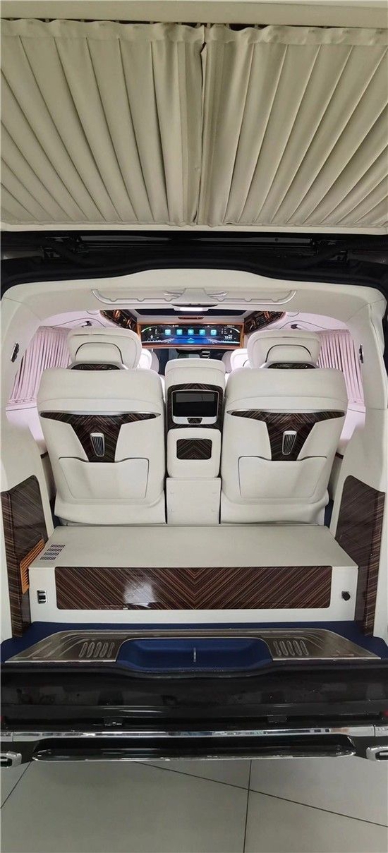 奔驰V260L改装VS680无隔断七座,内部装饰充满法国式的浪漫,九宫格灯珠镶嵌的椭圆形豪华顶棚造型设计气势磅礴,沿车身走向,两端与驾驶室隔屏和后门相衔接,形成古典对称的流线型图案。奔驰V250改装商务车全车新款电动精美布艺窗帘、控制车内电器的触摸屏操作,无不体现至尊豪华的商务形象,7座,家居、商用适合不过vs680