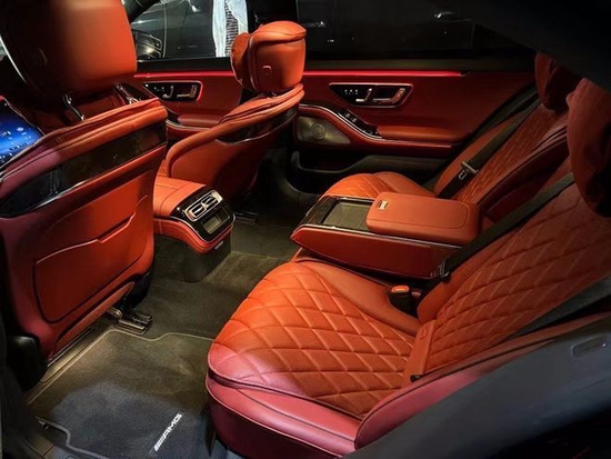 22款奔驰S500 配置:金属漆,专属Napa真皮座椅(红色菱形格) ,黑色鹿皮顶,21寸AMG V-型多幅轮毂(方向盘加热,后排电动调节,座椅记忆,后排座椅加热,主动通风,前后排中央扶手加热,门板扶手加热),钢琴漆拉丝内饰后轮4.5度转向主动氛围灯,黑色虚线装饰中央扶手箱,轮毂锁,急救包,前排MBUX内部辅助,高性能降噪轮胎,3.0直列6缸涡轮增压48V轻混发动机,前排带按摩功能多轮廓座椅,前排座椅腰部支撑调节,电动后窗遮阳帘,12.3寸液晶仪表盘,12.8寸中控OLED触摸屏,主动氛围灯,门槛饰板发光,无钥匙进入,无痕门把手,电吸门,防紫外线玻璃,全景天窗,实景导航,环影,无线充电,无线电话集成,苹果carplay,安卓汽车,的前LED奔驰LOGO,柏林之声环绕3D音响,客舱空气平衡香氛系统,加强气囊系统(第二排气囊),主动刹车系统,注意力集中系统,主动车道保持,碰撞预警系统,盲点系统,LED主动大灯系统,主动停车辅助,雷达测距 联系电话:18812637416刘经理 (同号微信)