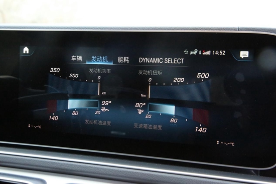 连屏的右侧可以实时显示当前发动机的功率、扭矩,机油温度、变速箱油温度。不管你能不能看懂,不管你是否需要,反正奔驰把能给你的都给你了,而且是量化状态,足以让你沉浸感十足,来一段说走就走的激烈驾驶。