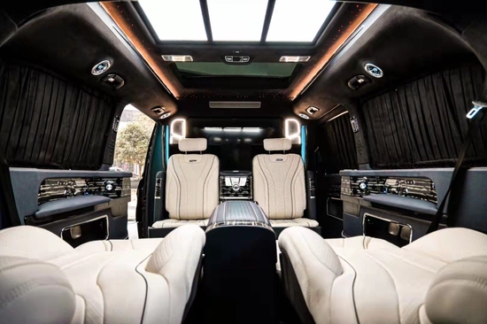 奔驰星影四座VLS600四座,利用目前最新研发、最先进空气动力学设计,打造轻量化车身,整车重心下移,提升车辆操控稳定性,拥有超强稳定性,号称房车界的劳斯莱斯,全新款奔驰星影四座VLS600四座,感受一场精彩纷呈、星光璀璨的旅程。北京销售奔驰星影四座VLS600四座咨询电话在文章影四座VLS600是四座升级版,全新的外观区别于以往的奔驰商务车,夸张霸气的车头,前脸引入希腊帕特农神庙设计理念,16根纵置镀铬格栅好似神庙柱身,威严庄重,宽厚的镀铬件更使得整车气质非凡。