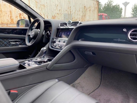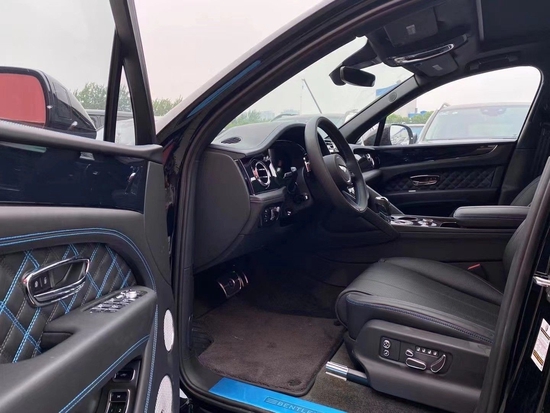 22款宾利添越 配置:旅行包(抬头显示,ACC自适应巡航,夜视系统,车道辅助,交通辅助) 对比缝线 前排座椅舒适包(前排座椅通风,按摩,可调节的靠背和靠背枕垫,舒适头枕) 后排隐私玻璃 LED迎宾灯 加热双拼三副方向盘 镀铬进气格栅,镀铬前中网,氛围灯,脚垫,穆勒包(菱形座椅、22轮、宝石燃油机盖)座椅刺绣。