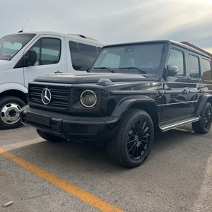 奔驰G500详细配置:奔驰G500 标配:4.0T V8 9速 ,天窗 座椅按摩 前排真皮座椅通风加热 后座椅加热 全液晶仪表 LED日行灯 64色氛围灯 自动空调 柏林之声音响 三把差速锁 前后电眼 雷达测距 并道辅助 脚踏 后视镜电动折叠 多功能方向盘 20轮熏黑轮,暗夜包(熏黑轮毂,熏黑中网,熏黑的转向灯后,后备胎罩熏黑)。