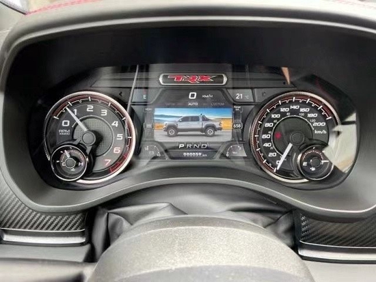 22款道奇霸王龙内饰部分进一步强化了其高性能版本的形象,中控台和座椅随处可见的TRX标识便是最好的例证。同时,作为道奇家族的旗舰车型,新车还配备了12英寸竖置中控屏幕,除了支持蓝牙、导航和车载Wi-Fi等常见功能,还支持AppleCarPlay和Android Auto手机映射。