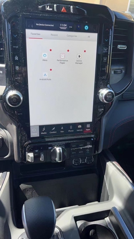 新车在内饰部分进一步强化了其高性能版本的形象,中控台和座椅随处可见的TRX标识便是最好的例证。同时,作为道奇家族的旗舰车型,新车还配备了12英寸竖置中控屏幕,除了支持蓝牙、导航和车载Wi-Fi等常见功能,还支持Apple CarPlay和Android Auto手机映射。
