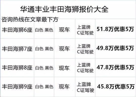 进口丰田海狮都会给车主带来超大空间和超豪华乘坐体验,华通丰业进口丰田海狮一款充满灵动之气,且带有稳重之态的奢华改装商务车,在设计上进口丰田海狮让简约与大气相结合,既展现了丰田海狮的尊贵与大气,又能带来更好的乘坐体验。◤丰田海狮4s店◢华通丰业出售2022新款改装6座、7座、8座、9座、13座(奢华版、旗舰版、VIP版 超VIP尊贵版、至尊旗舰版) 华通丰业合格证与座位相符全国上牌! 丰田海狮(6座/7座/8座/9座10座/11座/12座/13座),9座以下丰田海狮可上蓝牌! 实力大厂,值得信任,欢迎来电详询!专业改装参谋为您服务!质量担保,价格优惠.提供板车运输服务本公司现场改装,主要运营丰田考斯特 (配置|询价)商务车型。