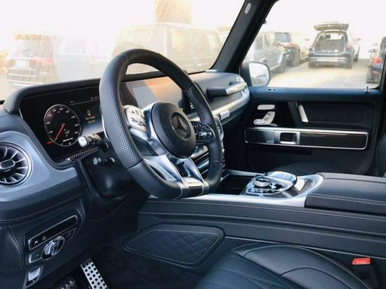 奔驰G63 AMG档次、质感和科技配置都明显提升全新奔驰G级的内饰相比老款有了明显的提升,采用了奔驰最新的双屏幕式设计,全液晶仪表盘和中控台屏幕都达到12.3英寸,同时内饰质感和工艺都有了很大的进步。中控涡扇式空调出风口也颇具设计感,车内的高档皮革内饰以及标有V12钻石图案设计的座椅、车门面板和脚垫,无不彰显着车主的尊贵身份。