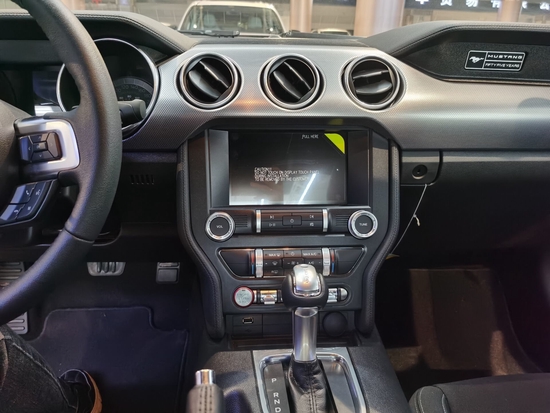 中控部分带有8英寸的屏带有倒影。福特野马2.3T匹配10速的变速箱。刘经理15222407919《同微信》真皮驻车制动手柄。AM/FM单碟CD带6个扬声器。