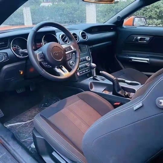 福特野马是黑色内饰搭配高级的丝绒座椅,主驾6项电动调节。刘经理15222407919《同微信》原车脚垫;真皮多功能三副方向盘。拨片式驱动模式选择。