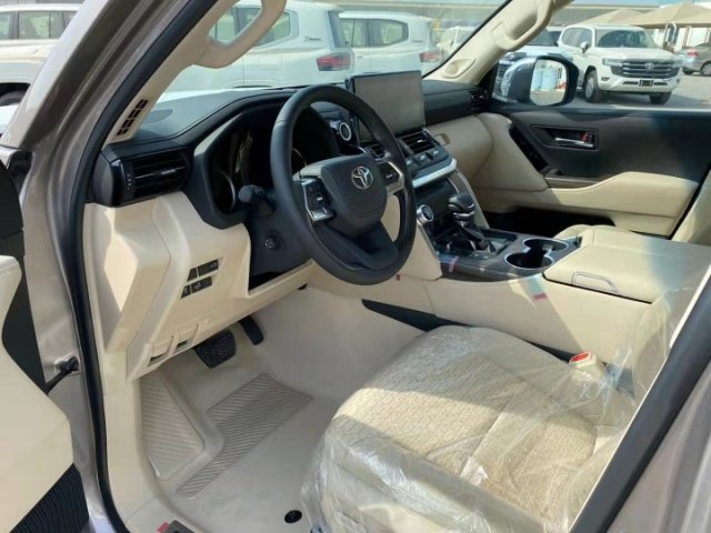 22款丰田兰德酷路泽3500详细配置:3.5TT 十速变速箱 VX 三眼大灯 流水大灯 天窗 银色金属行李架 黑踏 镀铬后视镜 镀铬门把手 大灯清洗 前后雷达 电尾门 雾灯 18铝轮 镀铬中网 三把差速锁 蠕行模式 主电动丝绒座椅 液晶仪表 中空大屏 14扬声器JBL音响 桃木内饰 桃木多功能方向盘带电动调节 坦克调头 车身稳定 无线充电 四驱独立空调 智能卡 无钥匙进入 360车身环影 自动电子手刹 镀铬内饰组件 车载冰箱 胎压监测 70周年纪念徽标 车身彩条。