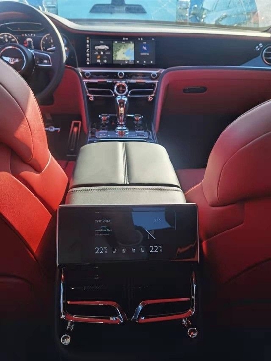 22款宾利飞驰三面翻转中控面板,当按下发动机起动按钮时,仪表板中央的饰面无声地滑动翻转,可呈现出一个12.3英寸的触摸屏,该屏幕上配备三个可自定义设置的数字界面。内饰用料顶级,手能触及的地方非真皮即实木,选材不计成本。中控台大面积的胡桃木饰板仿佛玉石一般润