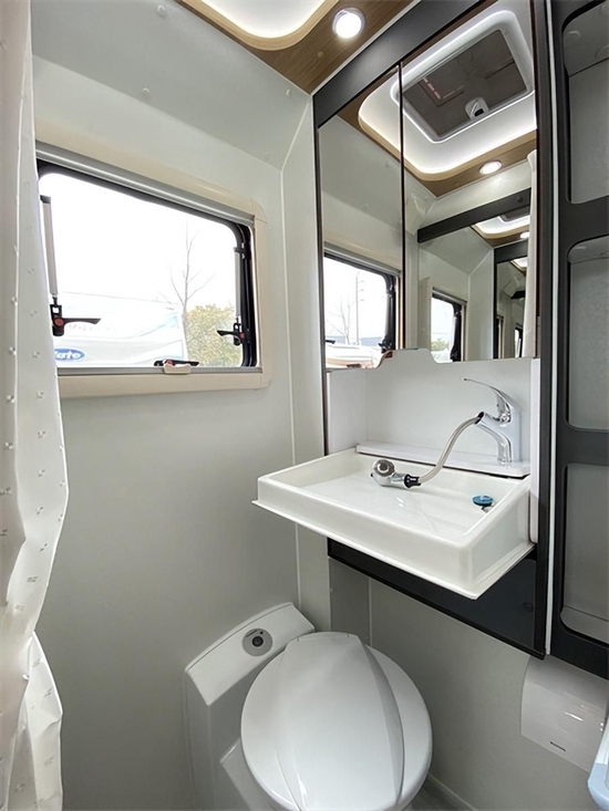 卫浴间体现出了不错的空间感和明亮度,卫浴间整体采用半吸塑工艺。配置上,我们可以看到多美达专用坐便器、带防水盖板的电源接口、毛巾架、梳妆镜等。210升的净水箱,60升灰水箱,完全能够支撑洗几次衣服的续航。最后总结一下:云游房车双拓展 429900元+28888能源包,高性价比车型,没有之一,6座布局,依维柯3.0T发动机,8AT自动挡,航空铝制车身,洗衣机,220升清水+50升热水,投影仪,六路监控。,150L大冰箱,关键是现车!好了本款云游双拓展依维柯房车133小2195峰6679哥就同大家介绍到这里。阅览世间美好,带您跨越山河,品味人间烟火,给您一个移动的家 -我是小峰哥