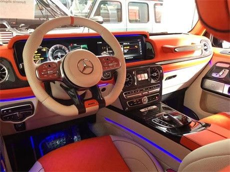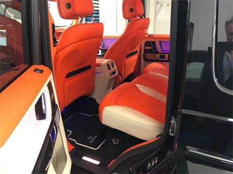 2020款巴博斯G900内部设计也是极尽奢华,皮革采用BRABUS最顶级的Mastik系列,来自BRABUS集团自有的皮革供应商四座独立设计,最新版本的中央扶手功能强大,集成了无线手机充电、冷暖杯架后排座椅电控、定制小桌板、星空车顶和车内香氛系统。