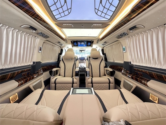 电动双开门带有自动防夹功能,车内进行了隔音降噪处理,创造了一个静谧舒适的环境,方便商务会议,办公和学习。整车内饰改装下来,彰显出了车主卓尔不群的尊贵身份和独特品味,匠心设计体现在每一处细节上,商务车内饰升级绝对是商务精英人士的不二之选。隐藏折叠小桌板,办公娱乐两不误。