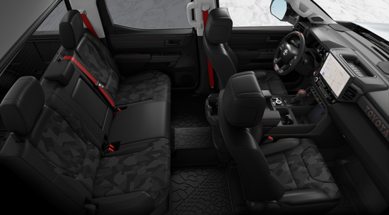 内饰方面,新车整体变化不大,而TRD Pro版采用的是全黑内饰,并且加入了红色缝线。至于座椅上,还加入了TRD Pro标识以及专属脚垫。