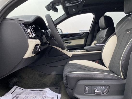 22款宾利添越全新样式的三辐式多功能方向盘,整体质感良好,中控台中央悬浮式液晶屏设计,上方圆形出风口是宾利独有的“牛眼式”出风口设计,新款宾利添越内饰几乎全部被顶级的牛皮包裹,而且全部是由技术优异的工匠纯手工打造,辅以少量的木纹和金属装饰,华贵至极。