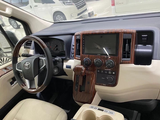 丰田(进口)海狮-HIACE整体造型以充满野性的硬朗气质为主,同时融入了国内市场消费者的审美取向。最为明显的外观设计就在于十分立体的前进气格栅,不仅烘托了很好的商务面包车型应有的野性,并且让整个前脸更加立体视觉效果更加宽大。还有着类似于丰田霸道的灯组,都给人营造出一种高端大气的风格。