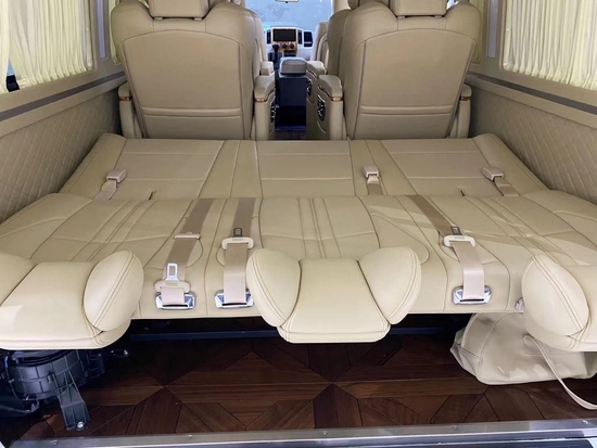 2021款丰田(进口)海狮-HIACE9座商务车采用2+2+2+3四排九座的设计,第二排和第三排均配备了两个Ottoman航空座椅,比埃尔法要两张,第四排排放一张三人座的沙发床,即宽敞又实用,在空间运用上非常可以。