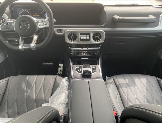 22款奔驰G63 (配置|询价)豪华精致的真皮包覆提供了足够的舒适性和支撑性,通风和加热功能让乘客免受高温和寒冷的煎熬。中控台多处均采用碳纤维材料覆盖,带彩色TFT显示屏的AMG仪表盘、AMG主菜单和单独的挡位显示器以及采用白色照明的AMG门槛。名贵的选材及精湛的内装令人拍案叫绝。