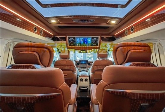 二排采用最新款的环抱式航空座椅,十二向电动调节,通风按摩加热旋转一应俱全。前方主副座椅还配备折叠式的隐藏小桌板,方便您日常办公就餐。采用一体环绕式车顶,15652384777同时还具有三色可调的航空顶灯,不仅增添了车内的视觉效果还提供了更加优越的照明条件。前方镶嵌式的25.5英寸影音系统还包含丹拿音响系统,随时随地在车内来一场视听视觉盛宴。