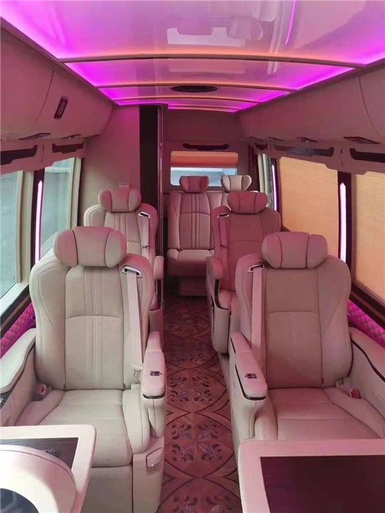 丰田考斯特9座改装商务车在外观上的高大内置空间的宽敞也为我们在内饰的改装设计上提供了可能。丰田考斯特9座改装商务车在内饰的设计上首先是采用了宽大舒适的豪华座椅。真皮的材质或者丝绒的座椅,丰田考斯特改装商务车9座在内饰的设计上均可以采取,。丰田考斯特9座改装商务车还可以选择原装进口的埃尔法座椅,丰田考斯特改装9座所使用的埃尔法座椅带有通风加热以及电动脚托等舒适的设计,可以为我们的行车带来更多的舒适的旅行体验。
