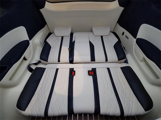 内部采用蓝色和白色的超纤真皮双拼设计,舒适度和观赏性都是极高的,腰线以上采用的则是高级麂皮绒的包覆,做工非常精细讲究。改装部分也是由宇通汽车进行的,在品质把控方面绝对是顶尖的。改装方面的质保也是由宇通进行2年或10万公里的保修政策。