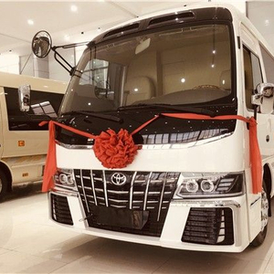 首先从丰田考斯特 (配置|询价)的车身外形上来说,为满足高端客户针对公务、商务活动以及办公需求而专门设定。首先我们看到的是车身端庄典雅的米黄金色,金属漆的设置,没有纯金色的刺眼,在端庄之中不失柔和之感。镀铬防蹭之上平行增加彩色腰线,色彩的搭配尽显贵族风范。在车轮处增加装饰轮罩,既能保护车轮确保行驶安全又可以增加车的美观,更显高贵之态。在车头的改装设计上,色调不再单一,镀铬前格栅再加上醒目的镀金丰田标志,更体现出车头设置的精细美观。
