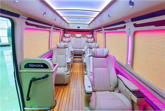 考斯特商务车改装销售注重实用性的设计,作为一款商务车,我们在内饰上追求舒适和便捷。高档的办公桌,技能显示尊贵的身份提升商务车的档次,更能让我们在旅途中又舒适的办公环境。真皮航空座椅,360度可旋转的首长席,方便您在旅途过程的临时会议,对于乘车人员,我们提供舒宽敞的乘车环境,座椅舒适柔软,更可以增加可以自动加热,调控角度的装饰,为您减轻旅途的疲劳之感。我们以最贴心的设置,满足您的旅途所需。