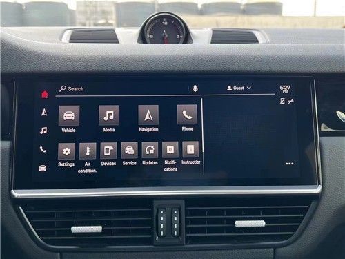 整眼望去最明显的就是一块12.3英寸液晶显示仪表,正上方还有一块时间表。下方按键整齐的排列在如同智能手机玻璃触控面板的表台上,操作时会发出声音以及震动反馈。同时,新车还装配有全新电子换挡机构,该设计此后也同样将成为保时捷最新的家族化设计理念。多功能方向盘按键周围用镀铬材质加以装点,转速表两侧各有一块7英寸全液晶显示屏,可查看多种行车信息。