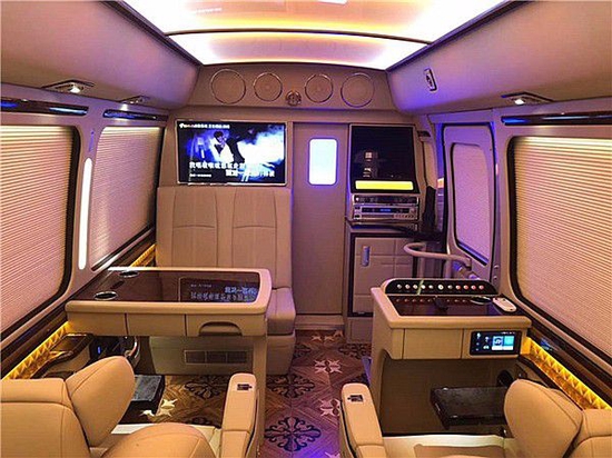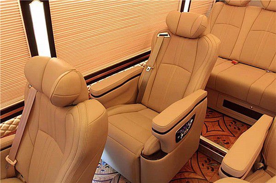 丰田考斯特12座改装商务车在外观的设计上虽然有着自己的独特和尊贵但是对于内饰的设计才是丰田考斯特12座改装商务车最神奇的地方。北京华通丰业原车出厂的丰田考斯特饰的配置极其简单,不用说豪华甚至称不上舒适。所以在改装之时就特别注重改装所能带来的尊贵感和舒适感。将织物座椅改装成真皮座椅或者是直接选用原装进口的埃尔法 (配置|询价)(配置|询价)座椅,在给乘车人员带来足够的舒适感的同时也可以带来足够的档次感。