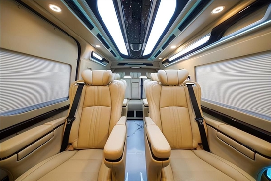 丰田海狮9座商务车采用2+2+2+3四排九座的设计,第二排和第三排均配备了两个Ottoman航空座椅,第三排放一张三人座的沙发床,即宽敞又实用,这样的情况下后备箱还能垂直放下四套高尔夫球装备!空间大才是真的王道。 华通丰业除了空间优势外,豪华性方面真皮、木质以及烤漆饰板的加入使得新车的内饰更具豪华度,车顶的设计时尚、大气,装彩色航空顶灯,星空顶,流水灯充满着奢靡的味道,点亮后车内的氛围是其它商务车所不能比拟的,也是的丰田海狮在内饰的环境上展现出与众不同的色彩,家庭出游必备首选。