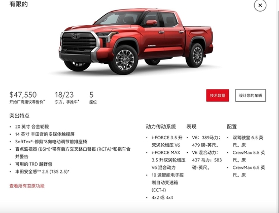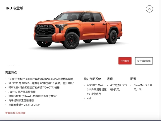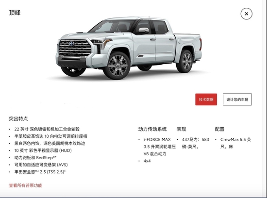 2022款丰田加版坦途 3.5tt SR5配置参数