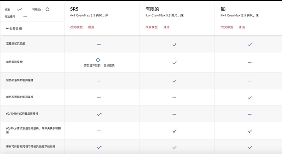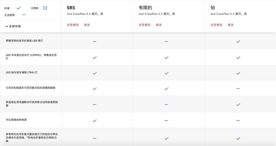 标配:分时四驱、雷测、倒影、织物座椅、一键启动、自动远光灯、双光束LED大灯、带有手动水平控制的前照灯、加热外后视镜、带自动制动功能的直观泊车辅助系统、盲区检测(带后方横向交通警报系统和倒车侧向交通警报系统)、自动远光灯、带转向辅助功能的车道偏离警报、车道追踪辅助、带防险紧急转向辅助系统的预碰撞系统、行人预碰撞系统、转弯迎面而来的行人检测/制动、星级安全系统、带自动定位功能的胎压监测系统、智能互联、9扬声器、重型牵引铰接接收器、油压表、前隔音挡风玻璃、电动后窗除霜器、后窗隐私玻璃