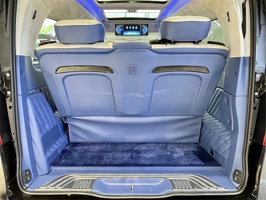 内部设计亮点更多,以深蓝和米白作为主色调,点缀有实木和黑色,商务气息十分浓厚,主驾驶座椅根据人体工学进行设计,能够完美贴合乘坐时的曲线,缓解长时间驾驶带来的疲惫。车内采用原装V级方向盘,功能布局也基本沿用原车布局,主要材质为桃木和真皮拼接而成,触感舒适丝滑,中控台保留原有的8.1寸全覆式大屏,采用了贯穿式桃木套件包覆,搭载有隐藏式氛围灯,营造出浪漫温馨的氛围。