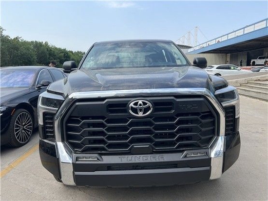 022款丰田坦途直接提供了有棱有角的车头前脸,大尺寸蜂窝状进气中网搭配镀铬边框处理,两侧泪痕造型LED矩阵大灯视觉效果并不输给福特猛禽 (配置|询价)(配置|询价)。车身侧面看也有了方盒子外观效果,甚至还要熏黑车窗立柱营造出悬浮车顶。黑武士改装风格轮毂搭配原厂越野轮胎,素车就能够实现不错的越野通过性。