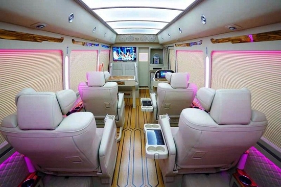 华通丰业从内饰的改装上来说,这就有很多细节的设置了。华通丰业从灯光的设置上就有很多种方式,我们可以在车顶内加装豪华的彩色灯,可以有橙色蓝色紫色等不同的灯光选择,营造车内氛围。华通丰业窗帘内侧可以加装LED蓝色灯光,车内立柱加装饰配合LED灯光,台阶上也可以镶嵌LED灯光,显示品牌坐标等。华通丰业在通道两侧增加LED蓝色灯光。我们都知道,光是最能衬托氛围的选择,对车内灯光的改装可以带给我们独特的视觉感觉,营造出或温馨或者淡雅的乘车环境。