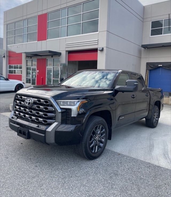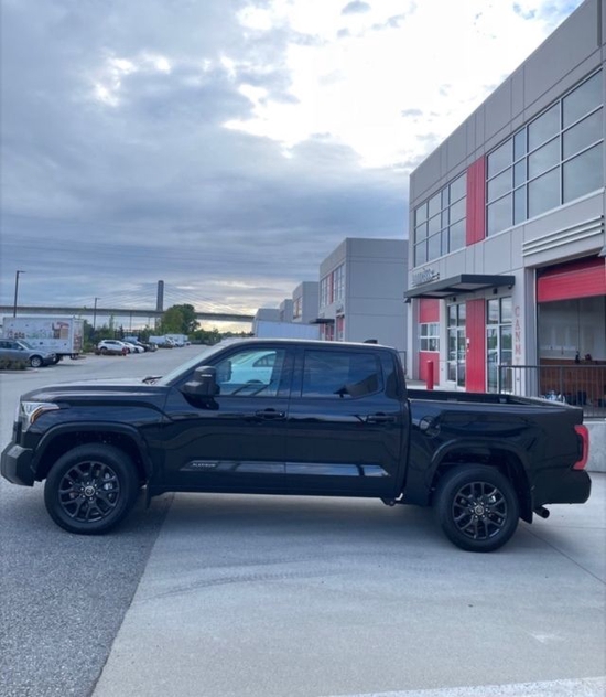 丰田坦途直接提供了有棱有角的车头前脸,大尺寸蜂窝状进气中网搭配镀铬边框处理,两侧泪痕造型LED矩阵大灯视觉效果并不输给福特猛禽 (配置|询价)。车身侧面看也有了方盒子外观效果,甚至还要熏黑车窗立柱营造出悬浮车顶。黑武士改装风格轮毂搭配原厂越野轮胎,素车就能够实现不错的越野通过性。