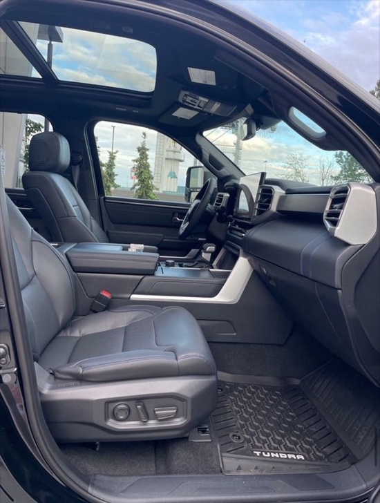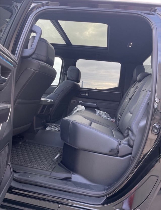 全新丰田坦途TRD版皮卡车内乘坐、后排座椅宽大,足以满足身高195cm的贵宾,第二排座椅可以完全折叠收起,为乘客提供更宽敞的腿部空间,已经达到了中大型车的水平,完全可以满足舒适乘坐的需求,部分特殊的装载给您的路途更添信心。