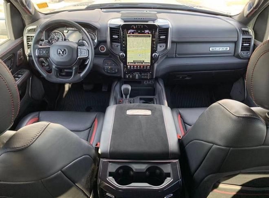 2022款道奇公羊霸王龙TRX(点击查看|询价)在内饰部分进一步强化了其高性能版本的形象,中控台和座椅随处可见的TRX标识便是最好的例证。同时,作为道奇家族的旗舰车型,新车还配备了12英寸竖置中控屏幕,除了支持蓝牙、导航和车载Wi-Fi等常见功能,还支持Apple CarPlay和Android Auto手机映射。